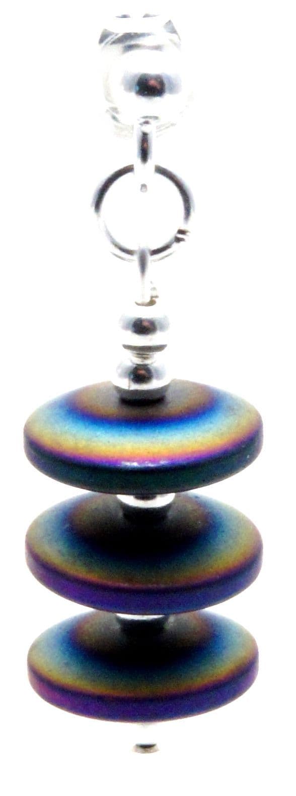 Frosted Haematite disc beads. A rainbow of subtle colours.
