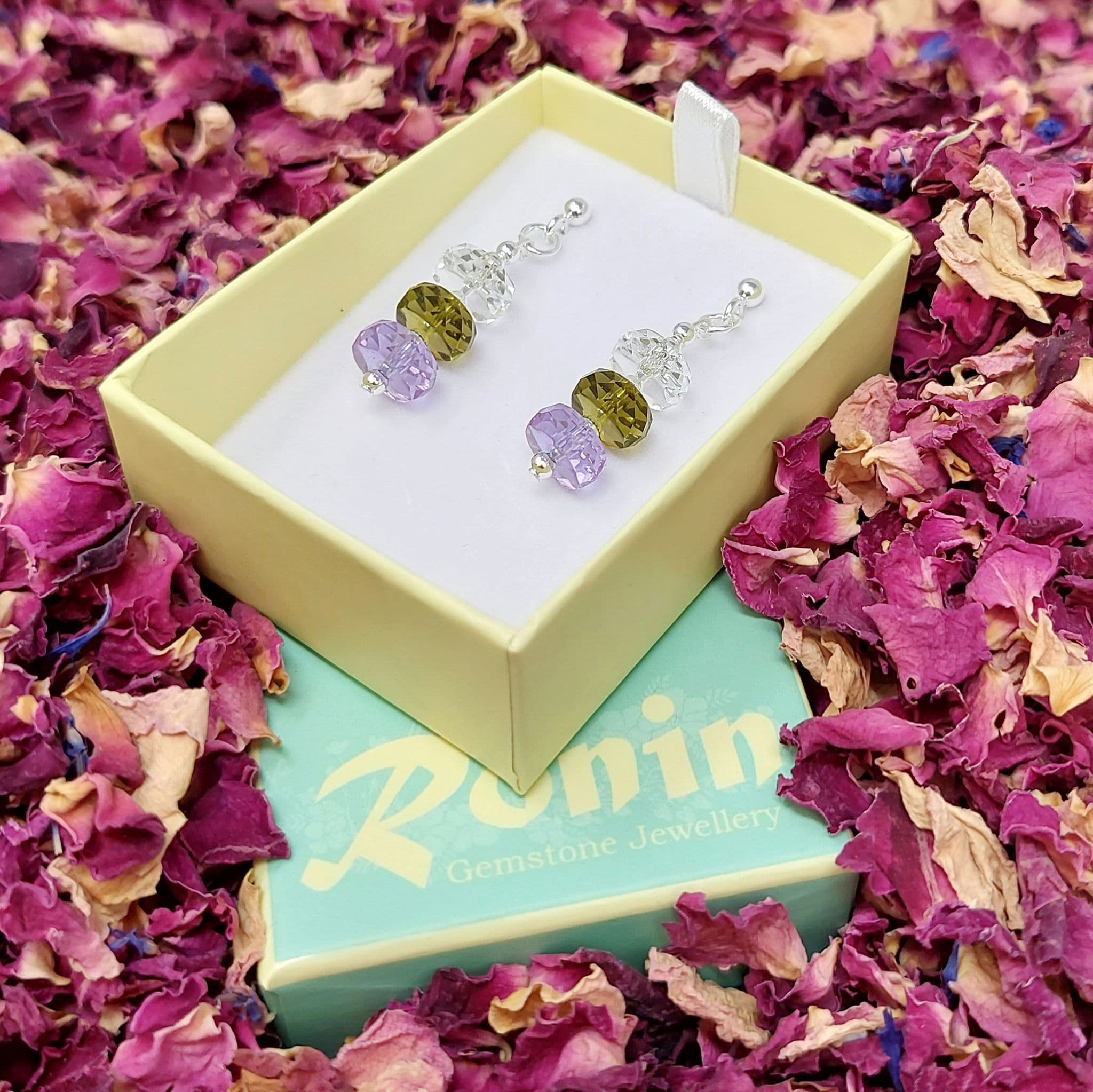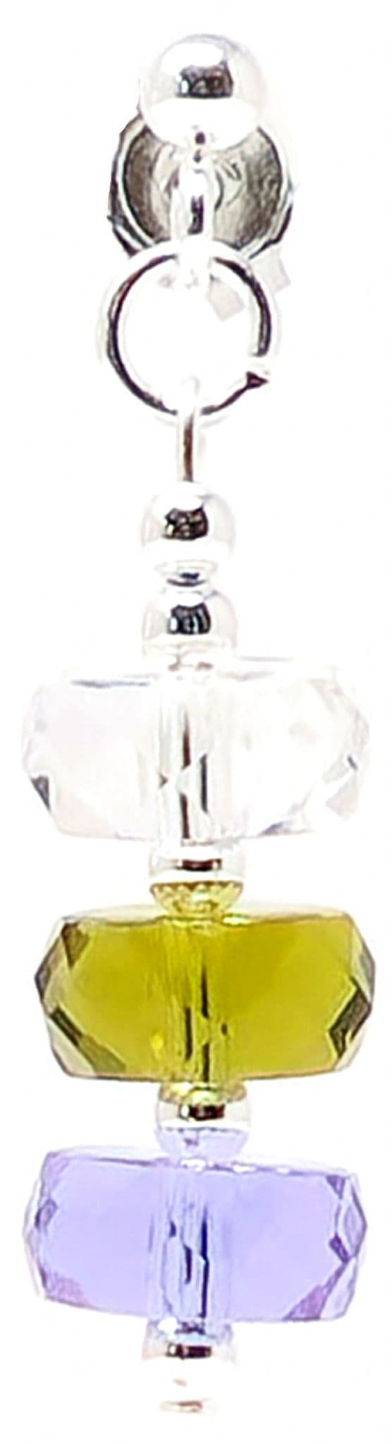 Stacked Crystal beads in 3 colours. Silver plated spacer beads.