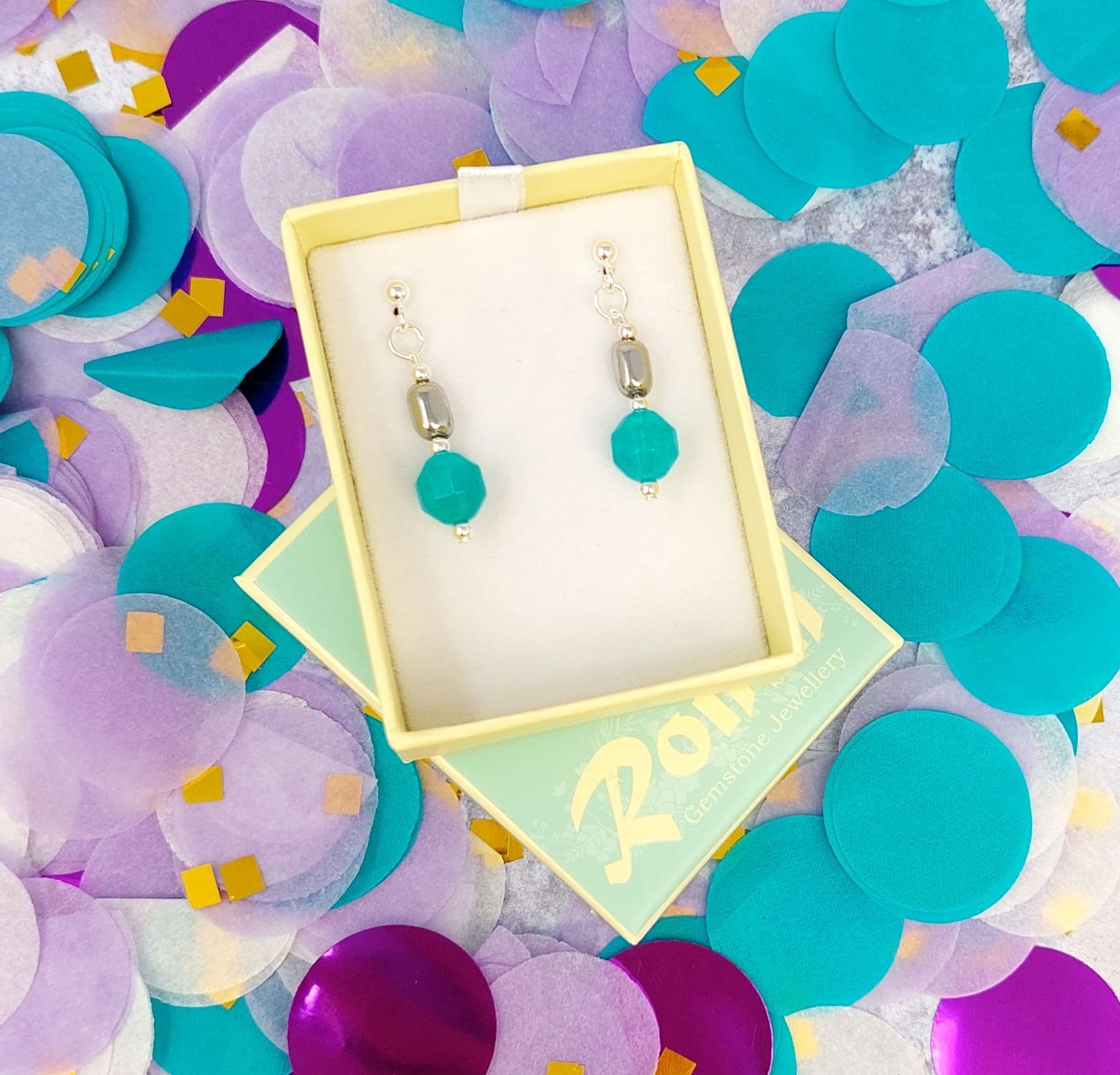 Agate gemstones with Haematite beads above.