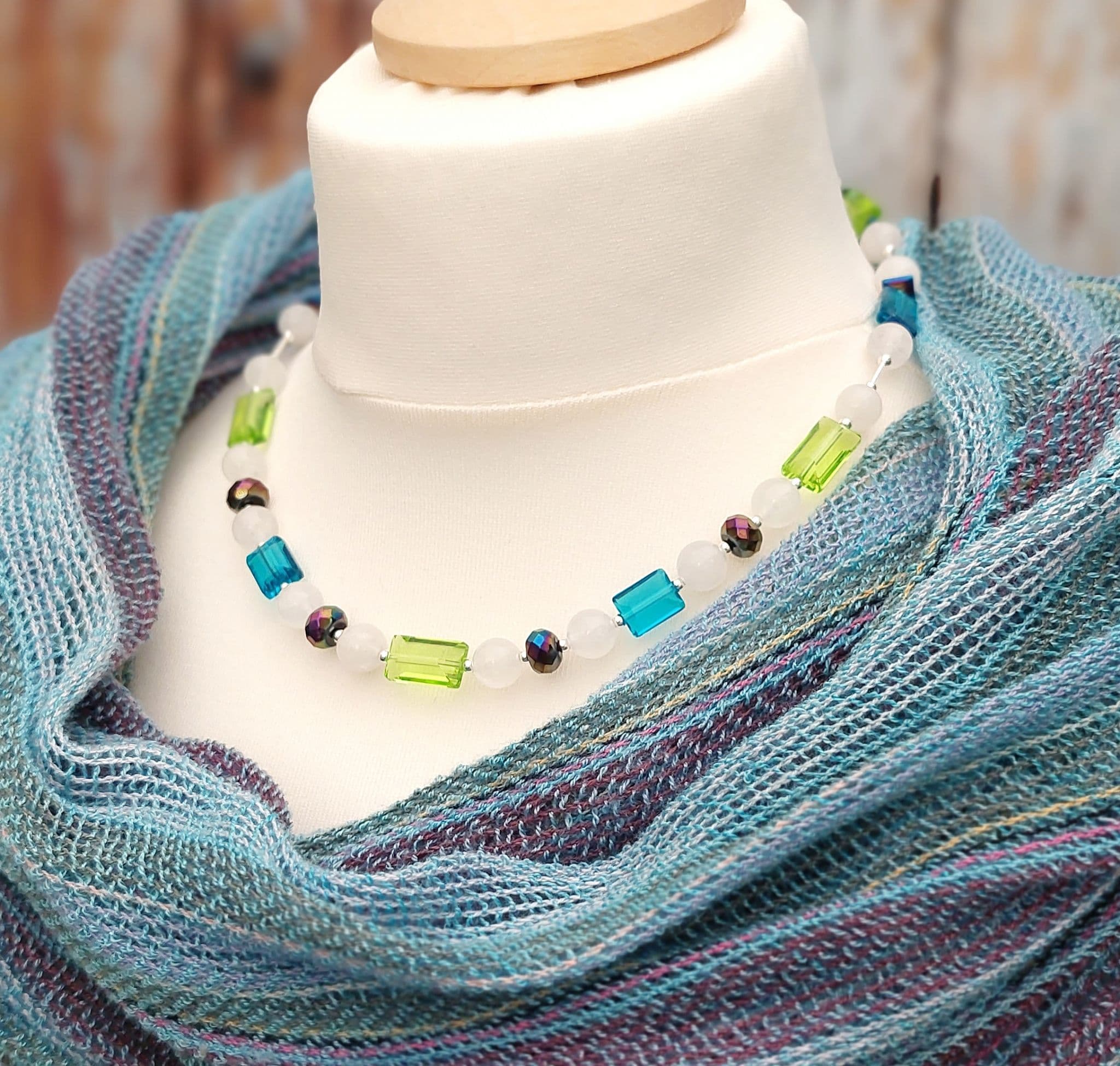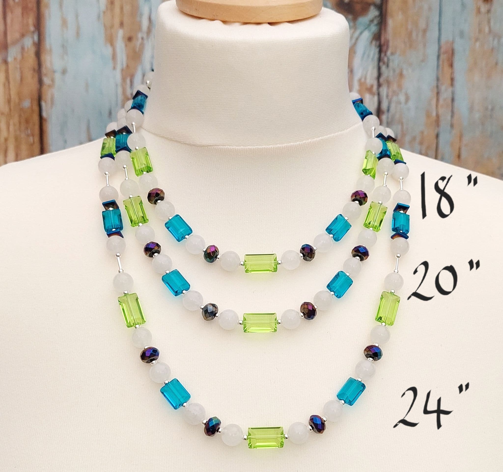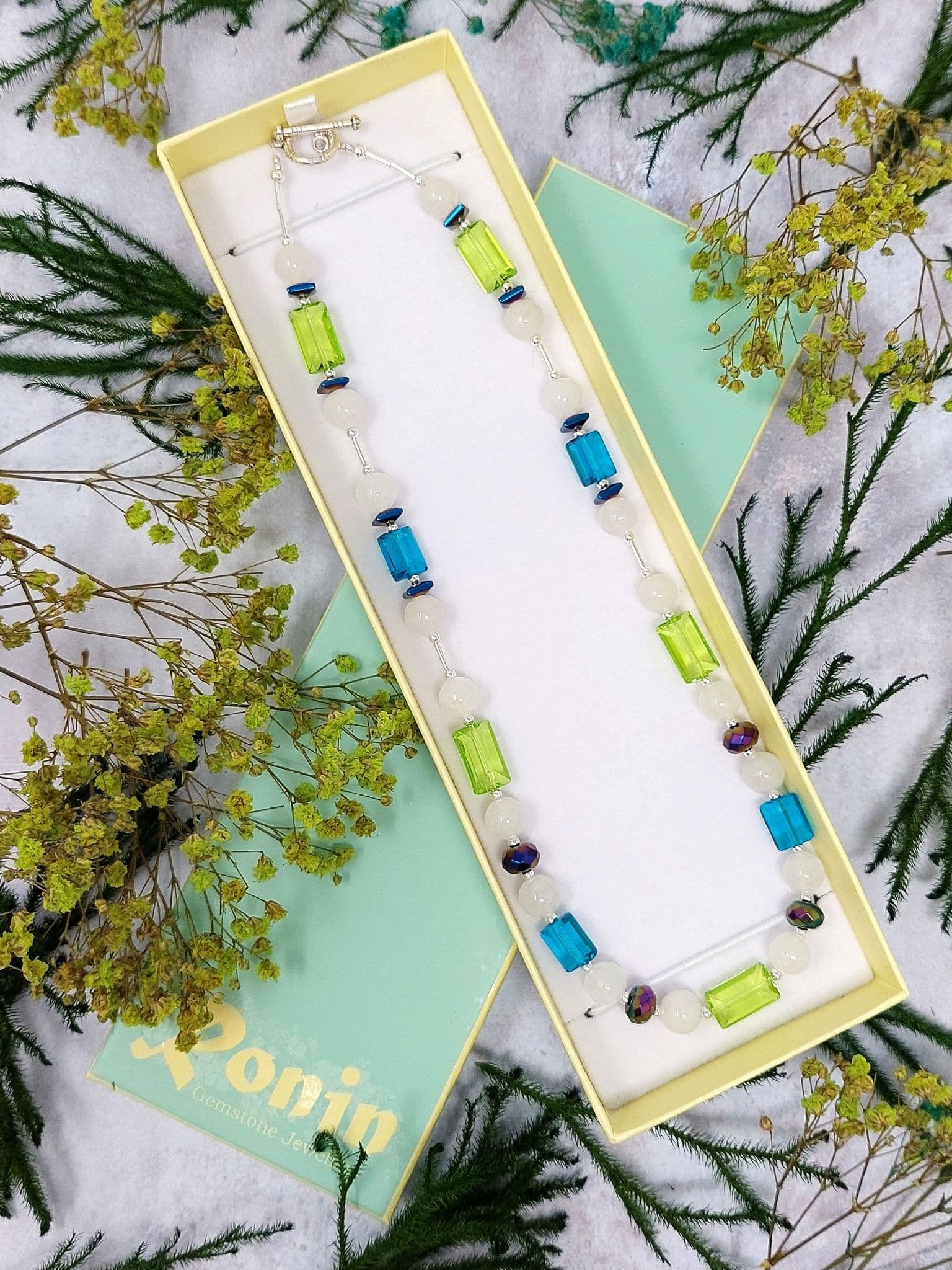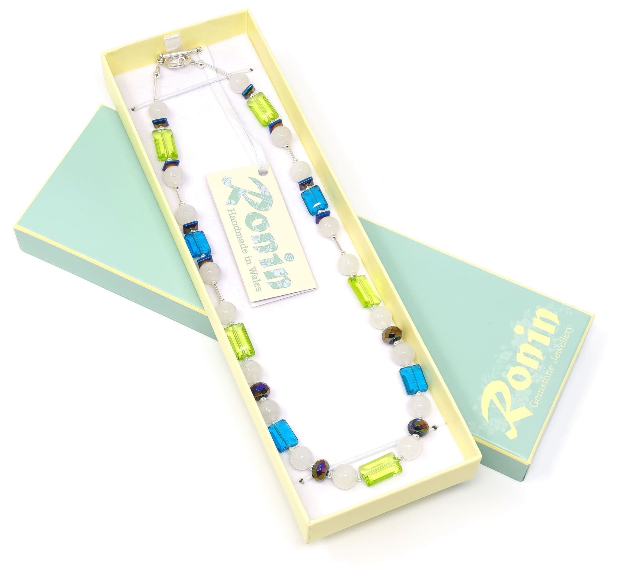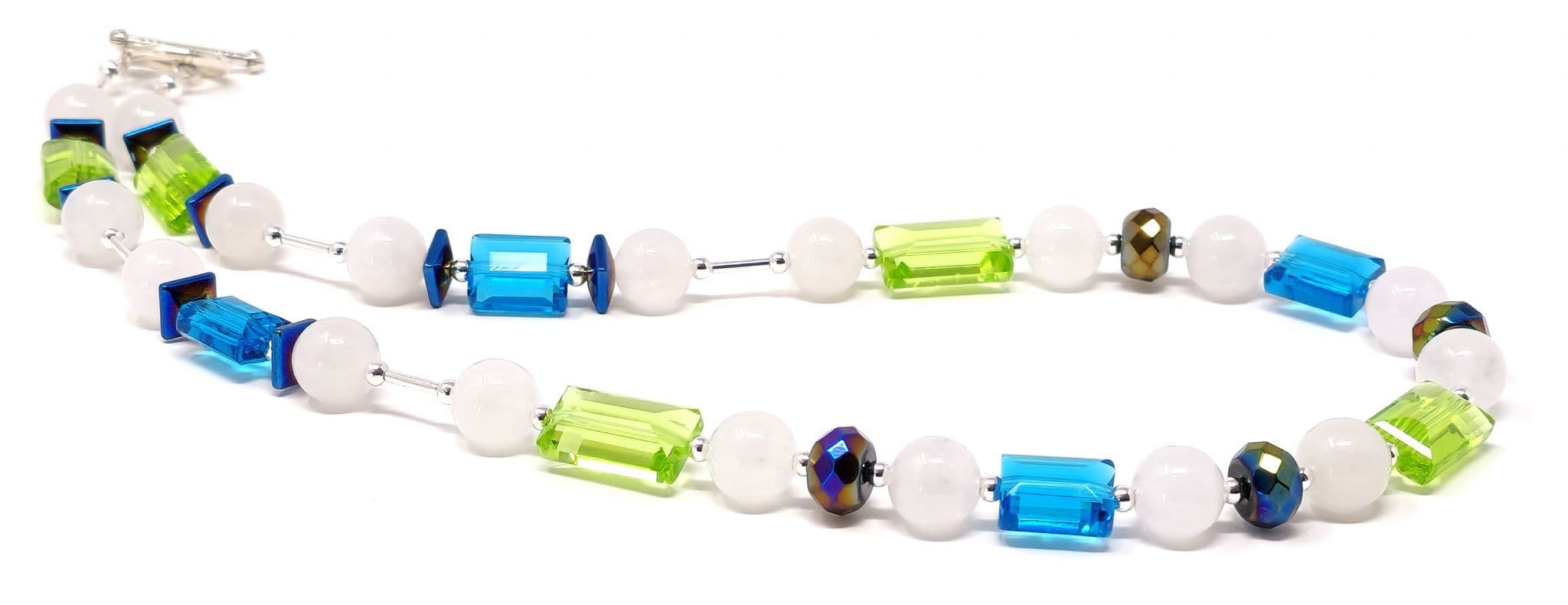 Quartz & Agate gemstone beads are combined with Crystal beads.