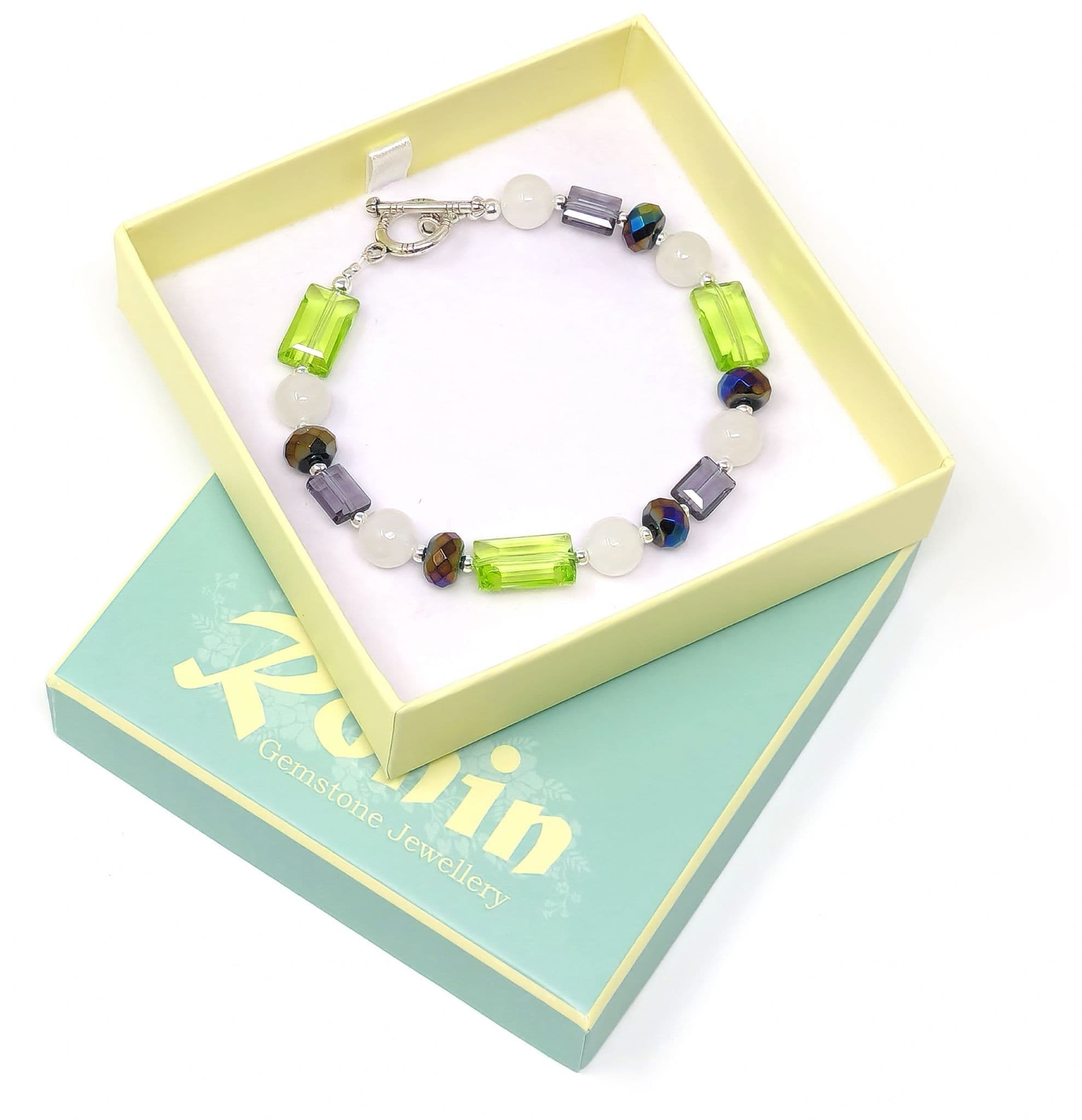 Quartz & electro-plated Agate gemstones with Crystal beads.