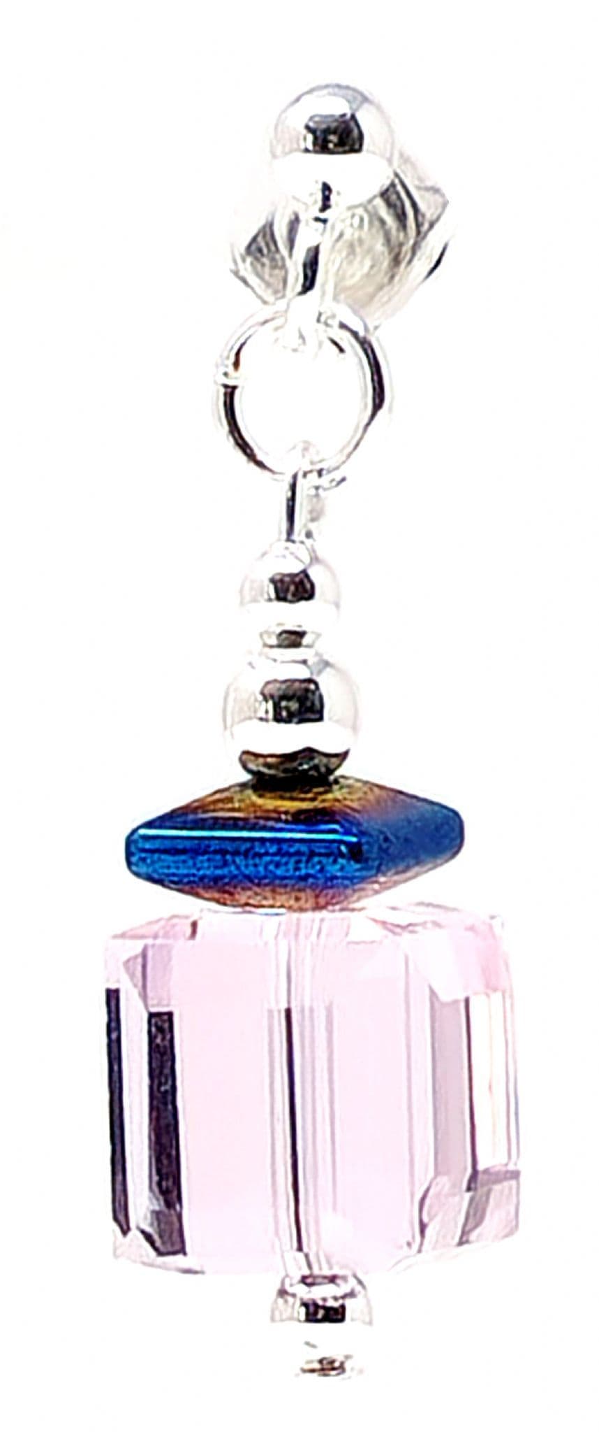 Crystal cube shaped beads with Haematite above. Silver plated spacer beads.