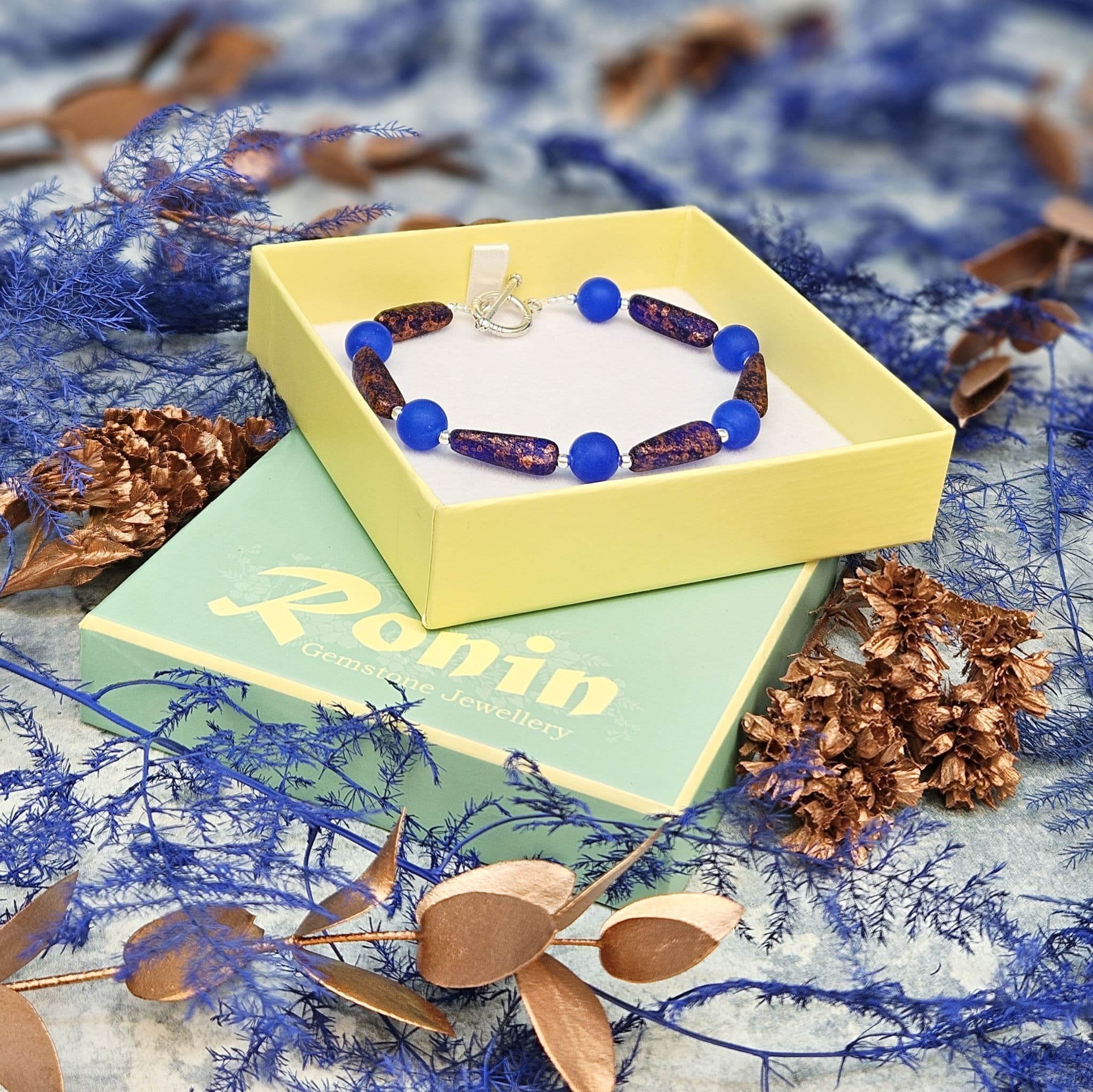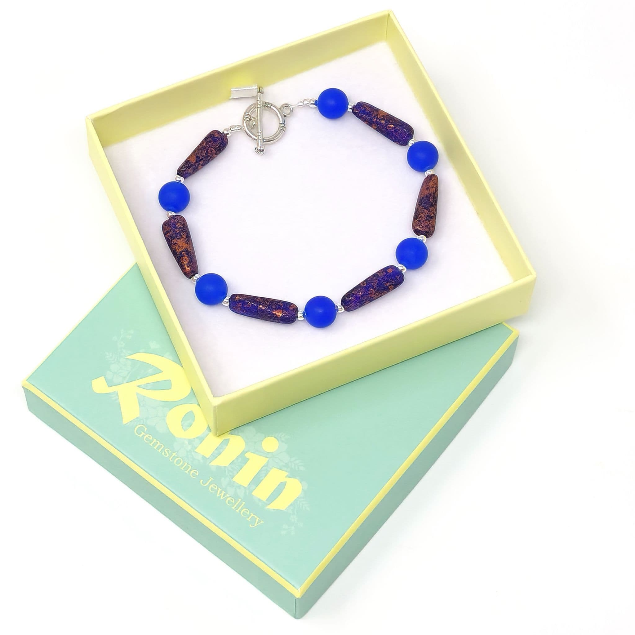 Blue semi-precious gemstone beads, with a frosted finish, & beautiful glass beads.