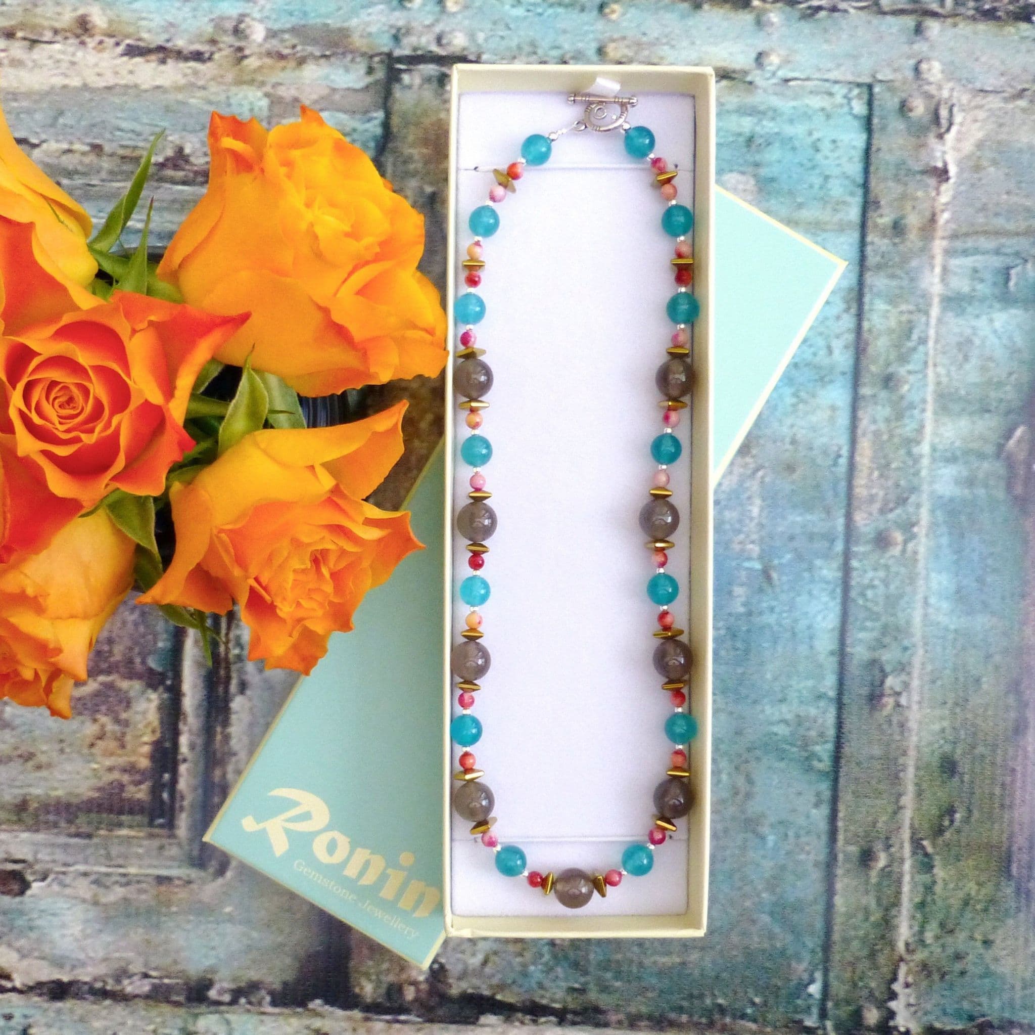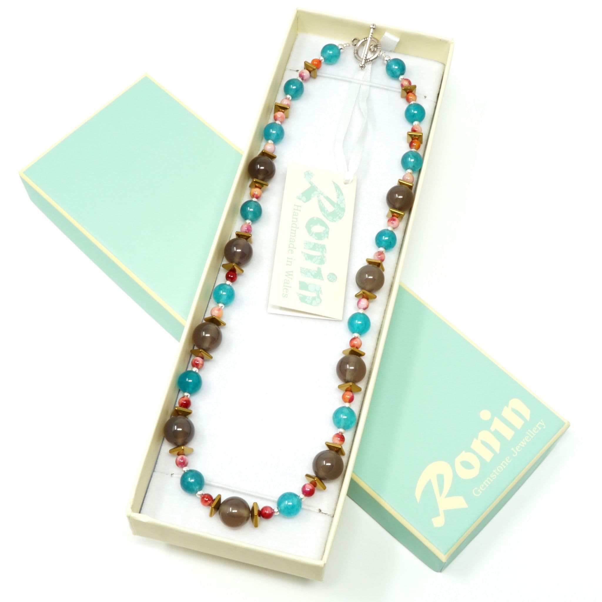 Agate gemstones, Haematite & dyed Jade.
